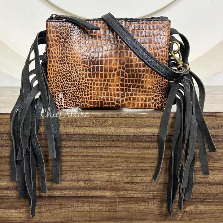 Product name:Genuine Leather Crocodile Designer Sling Fringe Bag