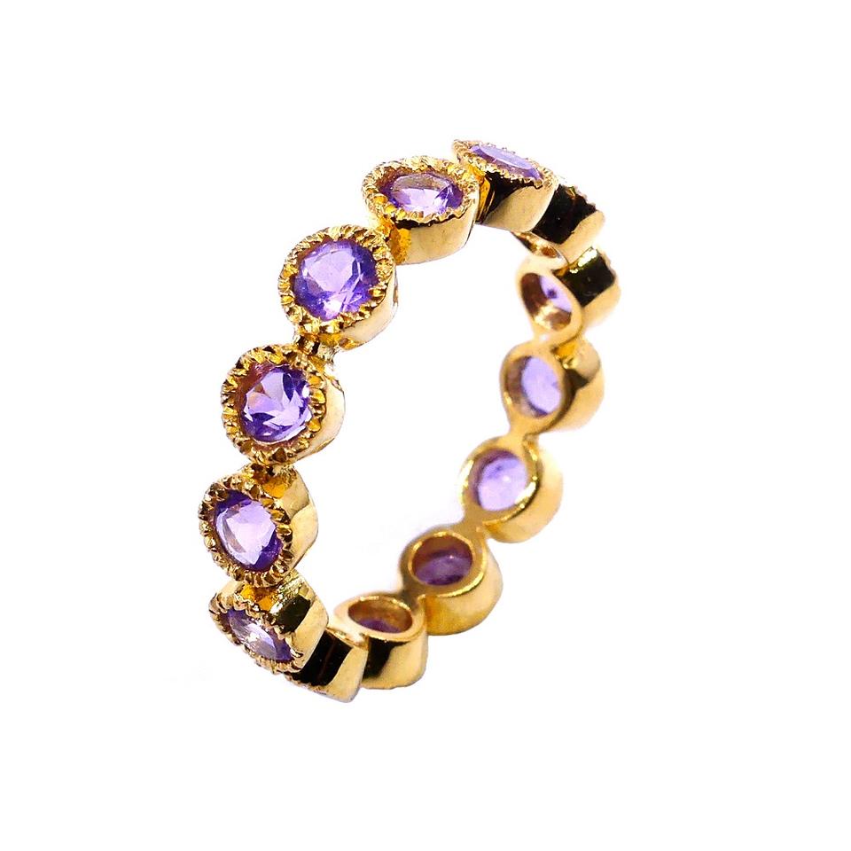 925 Sterling Silver Classic Band Ring Fashionable Gold-Plated with Amethyst Gemstone for Engagement or Party Wear Low MOQ