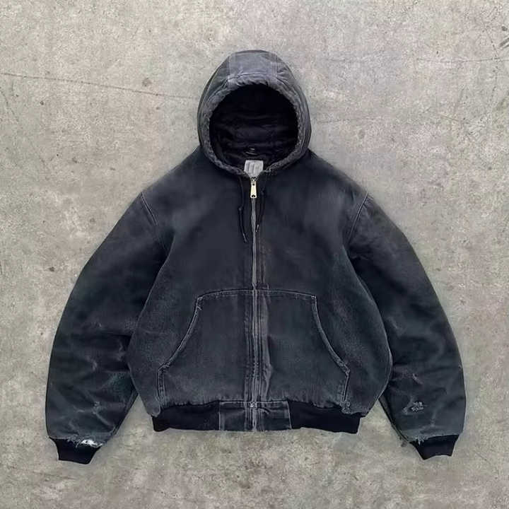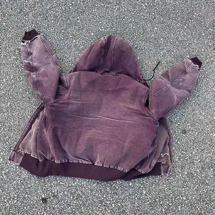 Fashionable Streetwear Heavyweight 100% Cotton French Terry Oversized Sun Faded Distressed Acid Wash Vintage Zip up Denim Hoodie