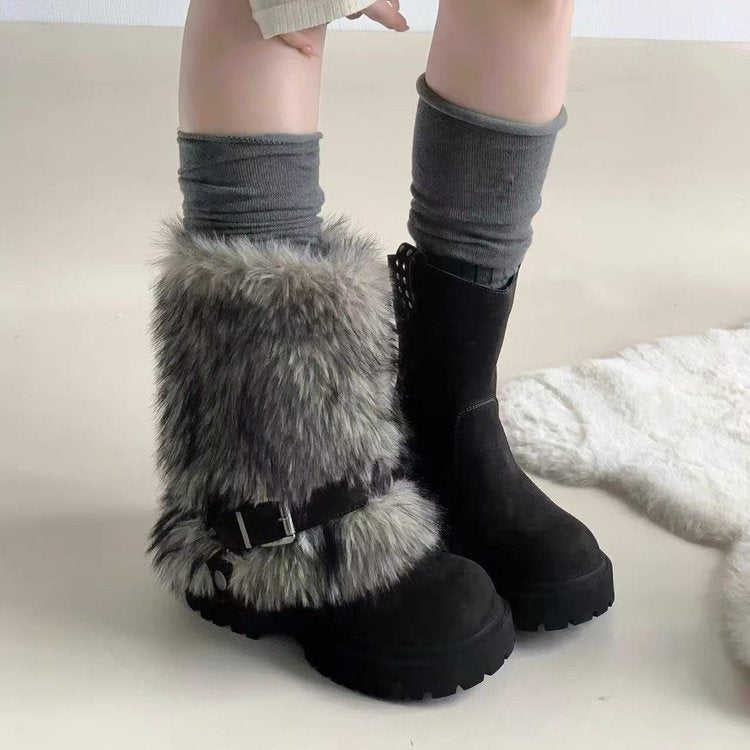 Fashionable Suede Boots Short Plush Upper Mid Heel(3-5cm) Toe Wool Insole-Winter Short Rubber Boots Thermal Waterproof Features