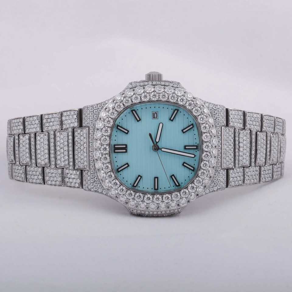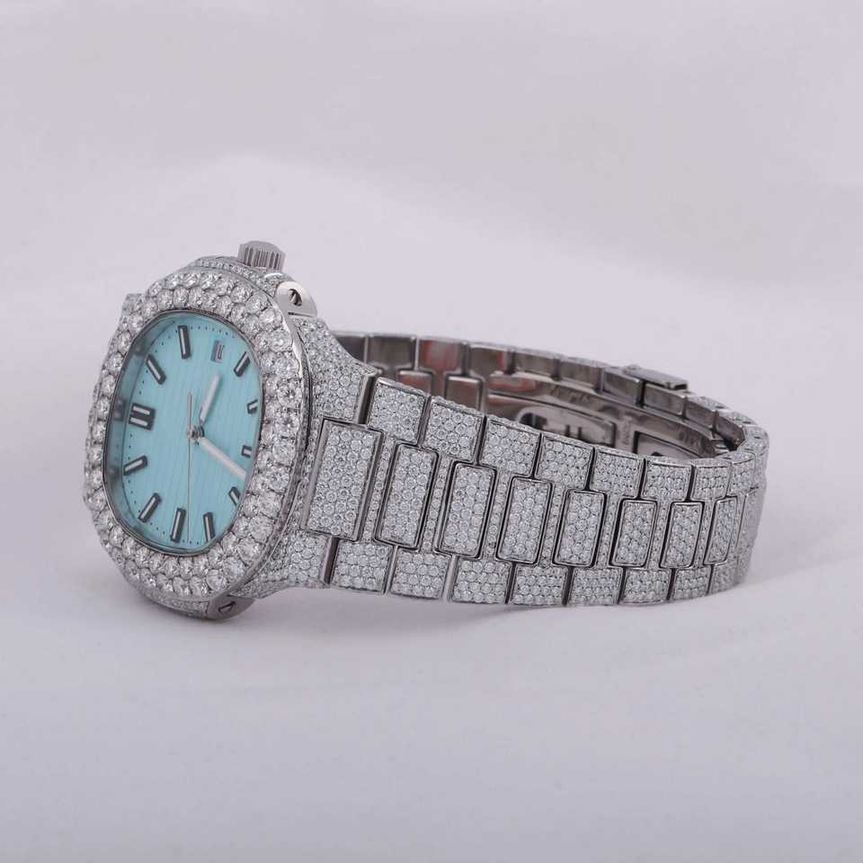 Fashionable Top Brand Luxurious 925 Sterling Silver Watch Round Case Shaped Moissanite Diamond Watch Hip Hop Men's Watch