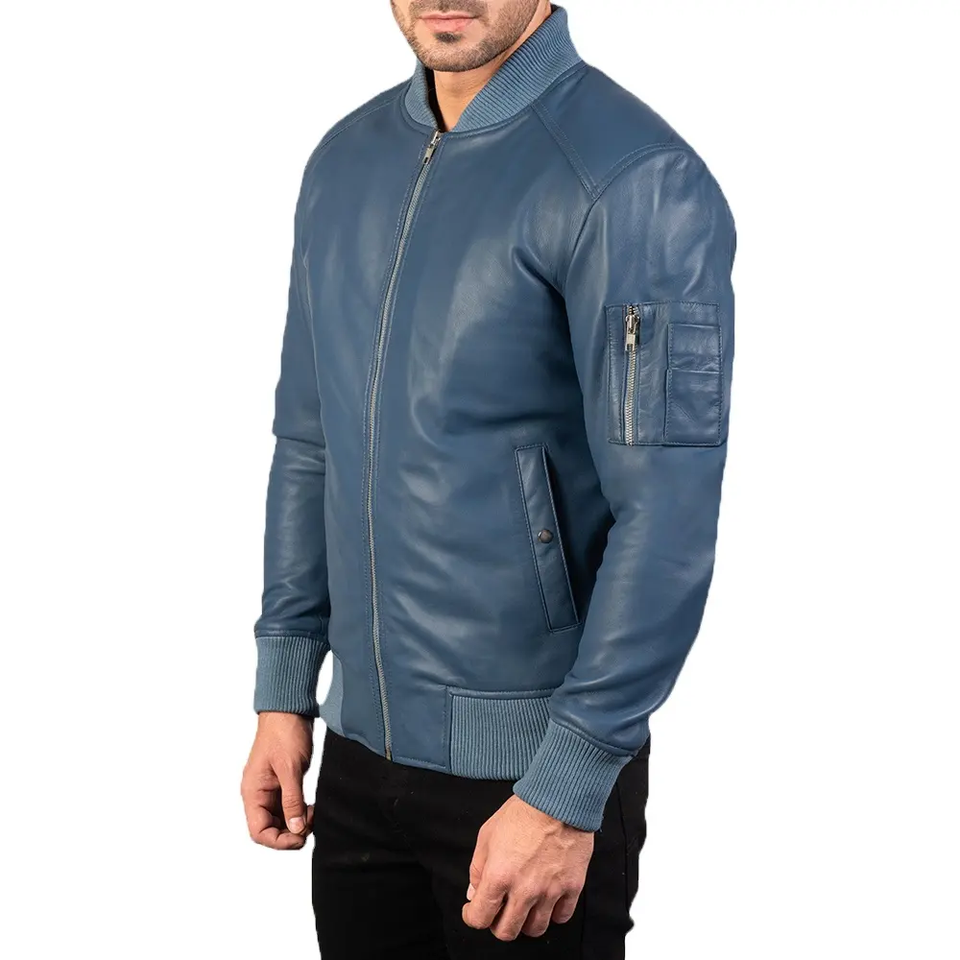 Fashionable Trend High-quality Slim-fit Zip Fastening Jacket Attractive Striped Black Ivory Full-grain Leather Jacket for Men