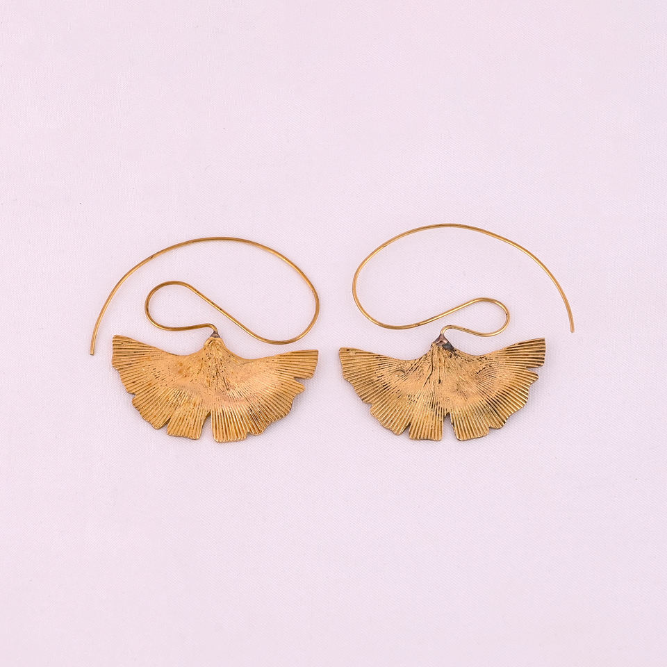 Fashionable Trendy Brass Gold Plated Ginkgo Leaf Earrings 50x50MM Size