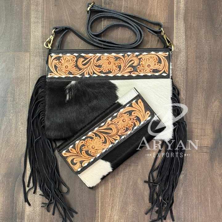 Product name:Hand Tooled Leather Cowhide Fringe Bag with Wallet Set