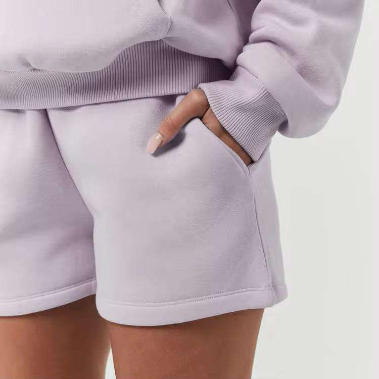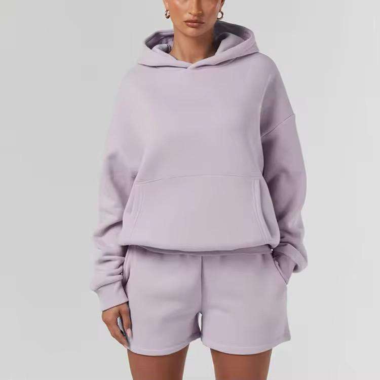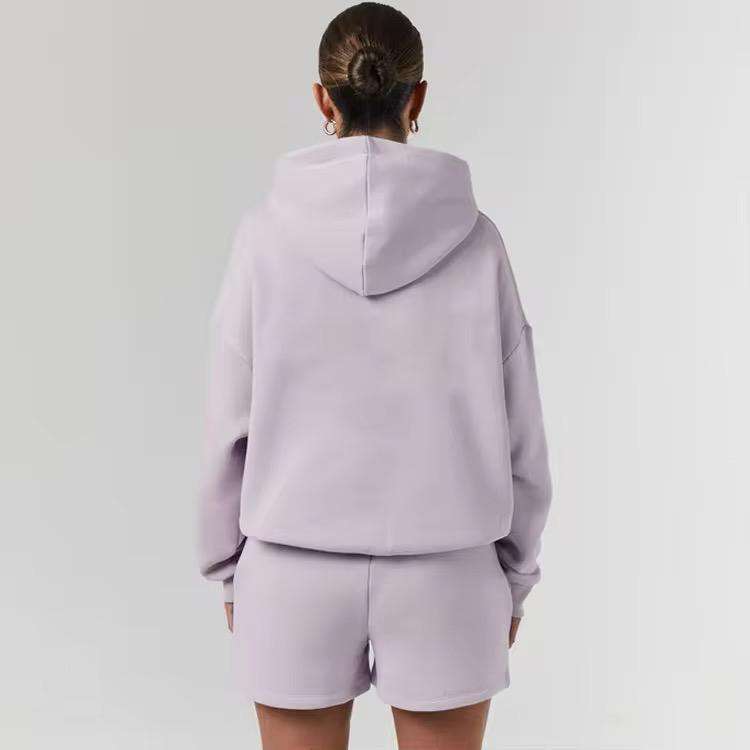 Fashionable Women Crop Hoodie and Shorts Sets - Soft and Durable for Casual and Athletic Wear No