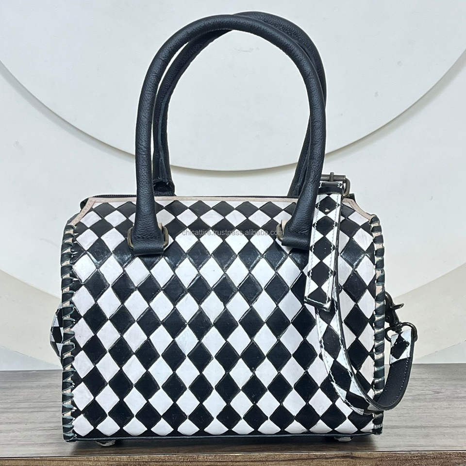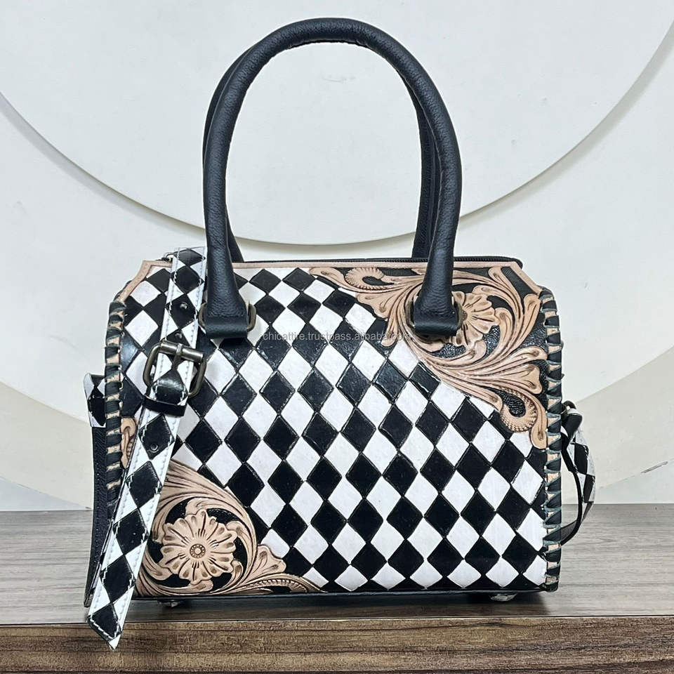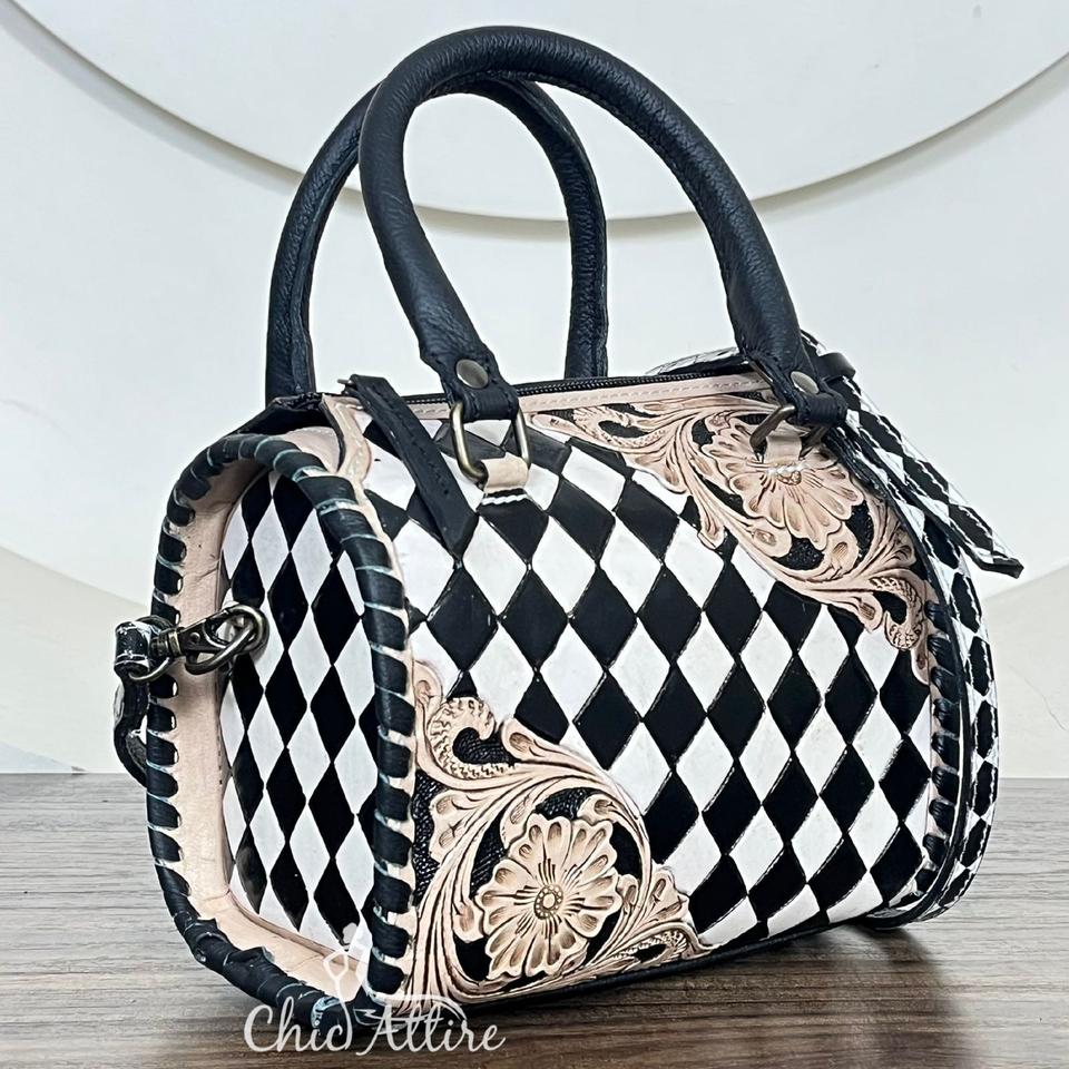 Product name:Hand Tooled Checkered Leather Speedy Duffle Bags