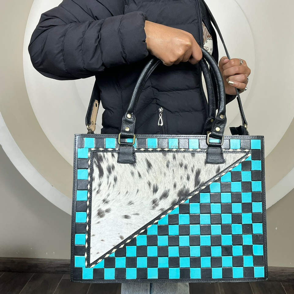 Product name:Hand Tooled Checkered Leather Tote Bags