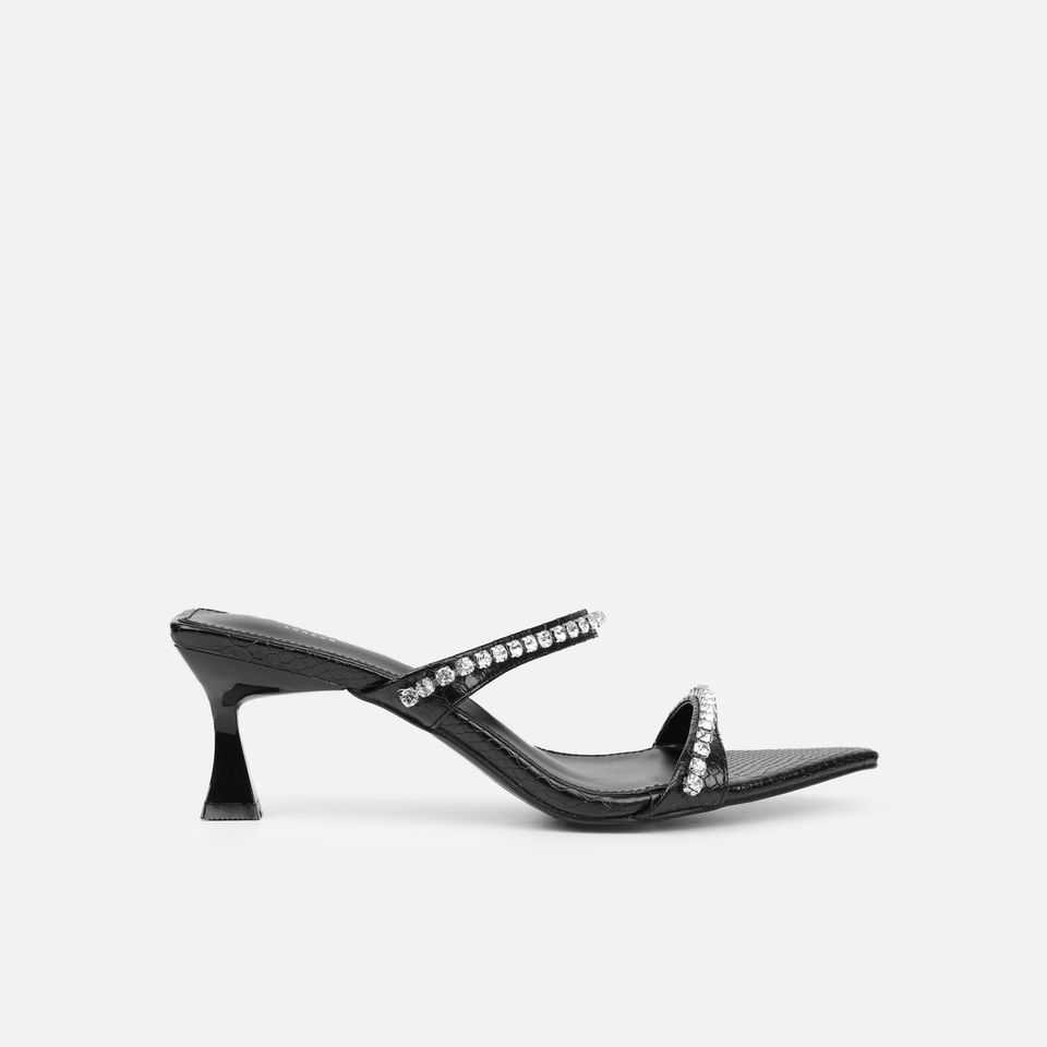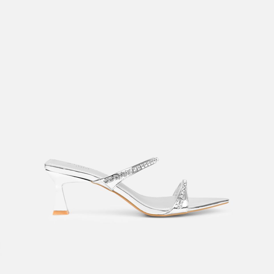 Fashionable Women Pvc Pointed Toe High Heel Strap SILVER MIRROR DIAMANTE SANDALS Shiny Strappy Sandals slippers