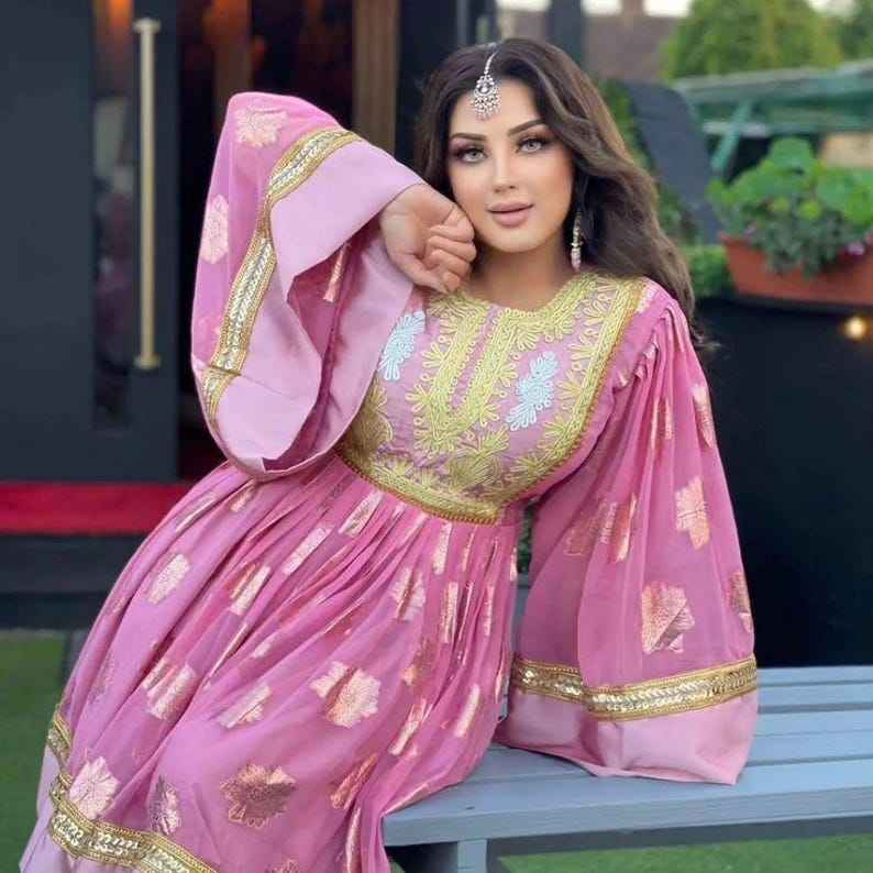 Fashionable Women's Afghani Kuchi Embroidered Velvet Casual Dress Lace Floor-Length Vintage Traditional Wedding Party Wear