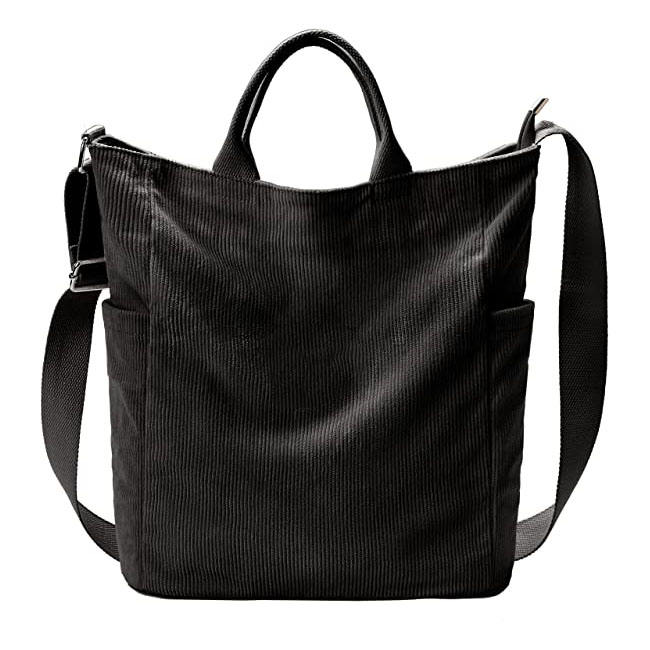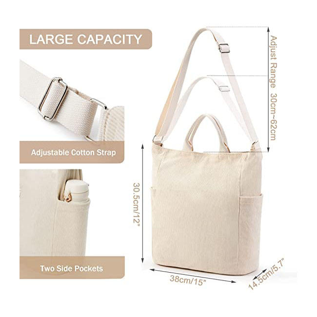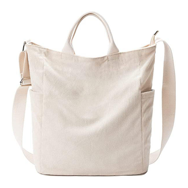Fashionable Women's Canvas Crossbody Tote Bag Soft Corduroy with Zipper Handbag Custom Design Solid Color for College Affordable