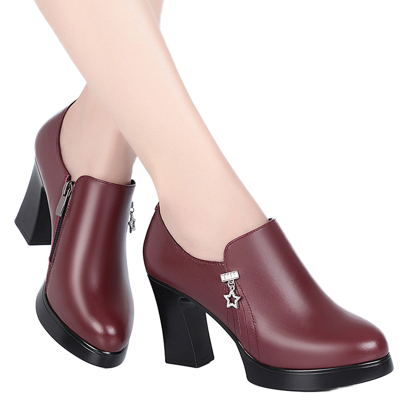 Fashionable Women's Casual Office Shoes Square Heel Slip-On Solid Genuine Leather Fashion Trend Closed Toe Summer Winter Spring