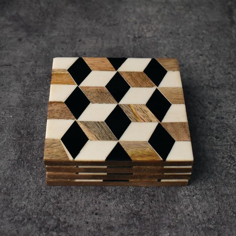 Fashionable Wooden Coasters Decorative Coaster Set for Dining Tea Coffee Table for Wedding/Party Hot/Cold Beverage Kitchen Use