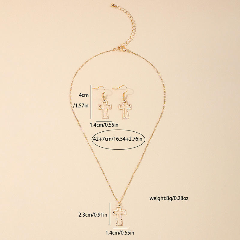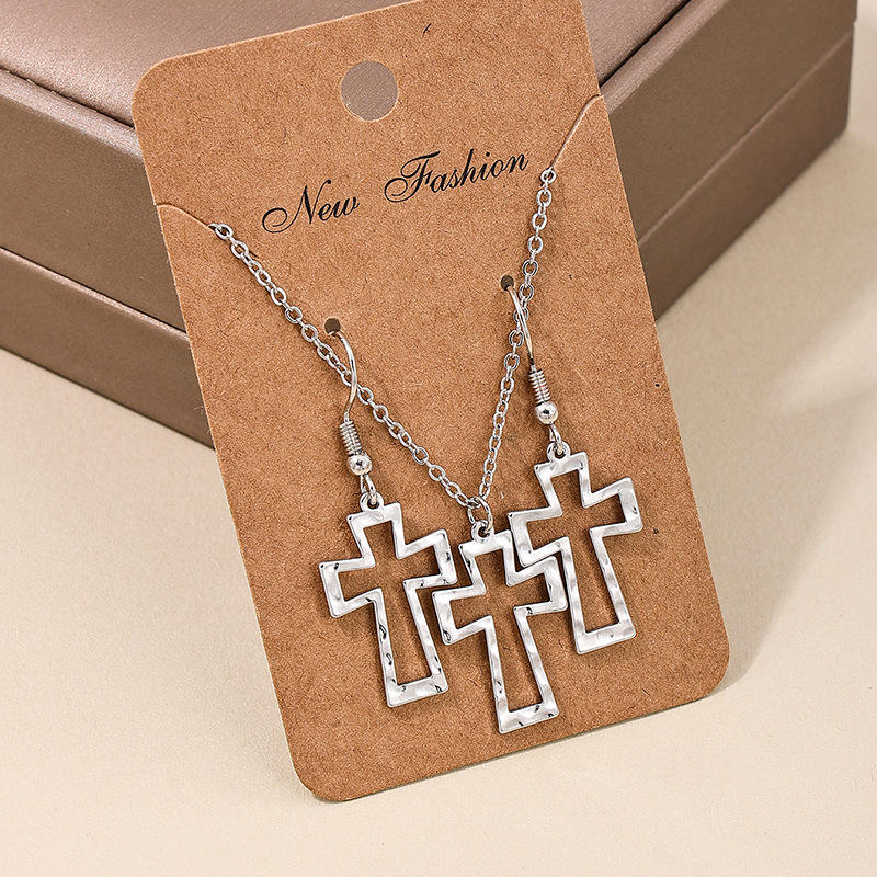 Fashionable and Exquisite Holiday Style Bohemian Jewelry Set Hollow Cross Ladies Necklace Earrings Set
