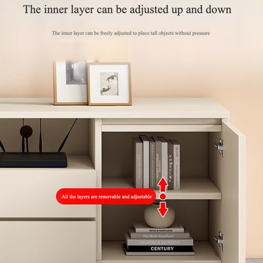 Fashionable and beautiful living room home use floor standing large capacity storage locker with drawers and cabinet doors