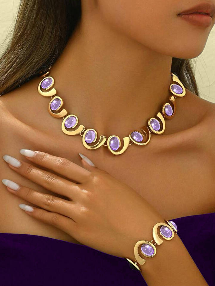 Fashionable and elegant shaped emerald necklace geometric red spiral snail bracelet set