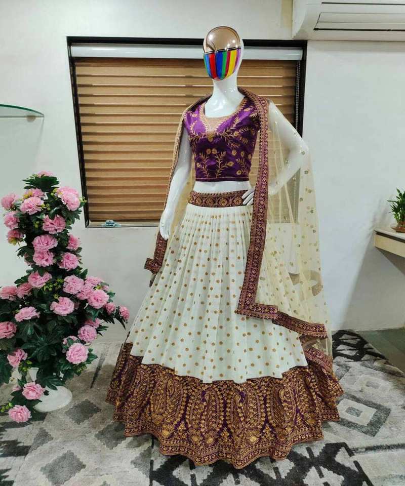 Fashionable Party Wear Ethnic Garment Georgette Silk Embroidery Work Lehenga Choli Dupatta Low Price Surat Cotton Linen Net
