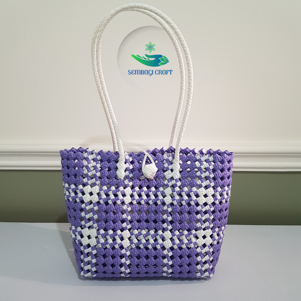 Handmade Woven Tote / Basket Bag Style Woven Tote Bag Fashionable Novelty Shopping Bag Made From Recycled Plastic
