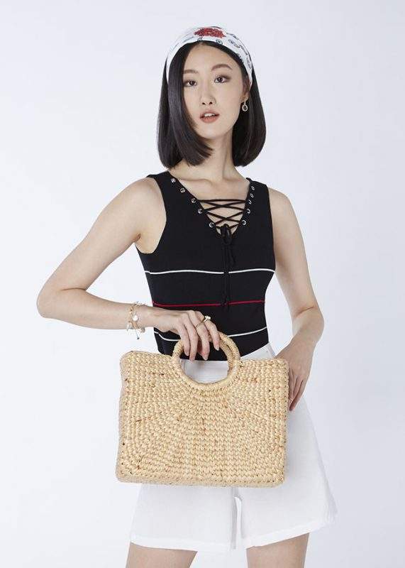 Hot Trend Fashionable Halfmoon Water Hyacinth Custom Straw Bag Pom Pom Two Handles Open Closure Tassel Embroidery for Summer