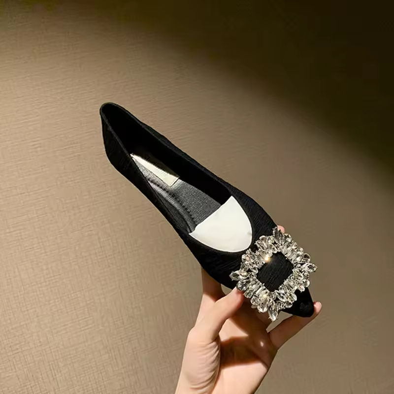 Fashionable Rhinestone Slip-On Patent Leather Black Silk Pointed-Toe Stilettos with Sandals for Women Party Occasions