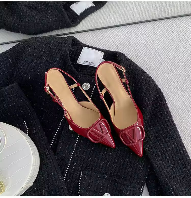 Fashionable Light Weight Rhinestone Patent Leather Black Silk Pointed-Toe Stilettos with Sandals for Women Party Occasions
