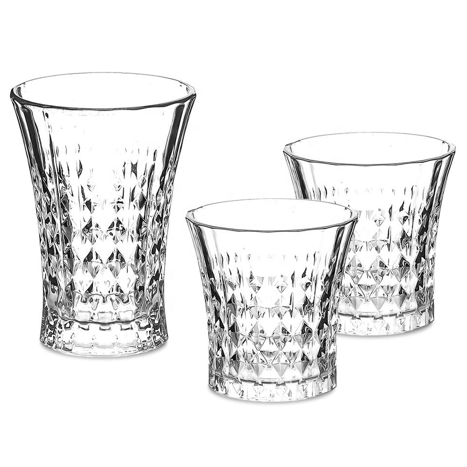 Fashioned Clear Diamond Texture Glass Tumbler Rocks Glasses Engraved Facet Whisky Glasses