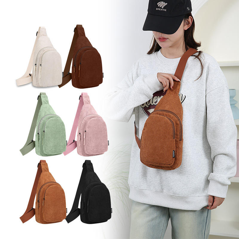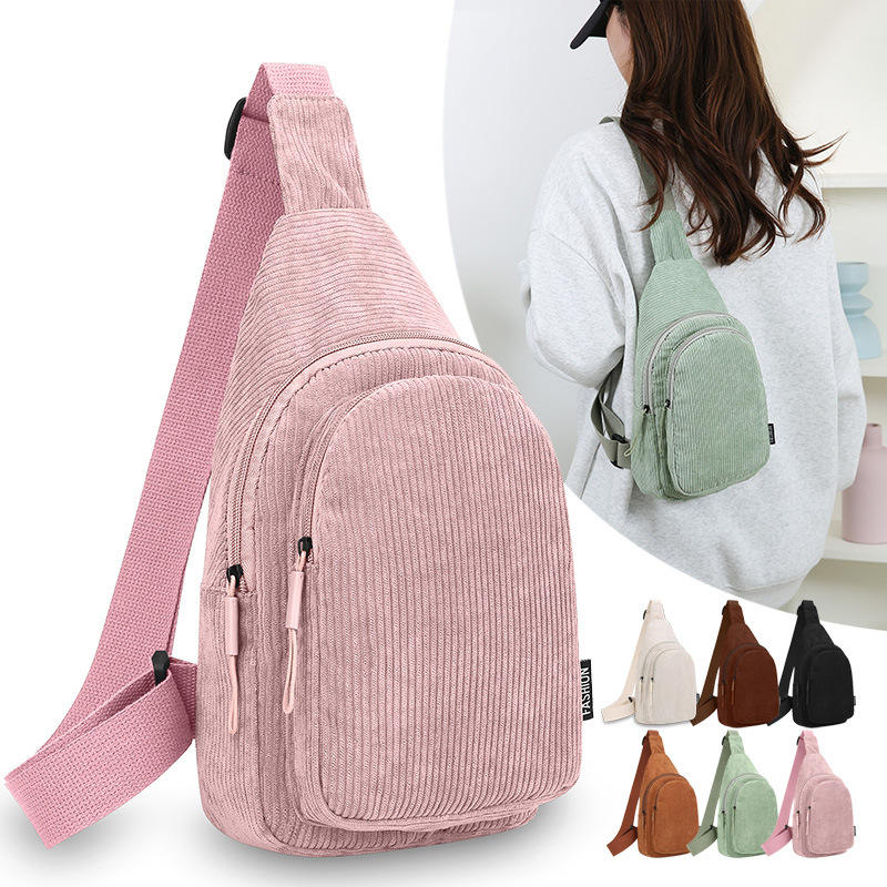 Fashlux Corduroy Women's Chest Bag Single Strap Multi Layer Zipper Closure Everyday Outfits Crossbody Bag Pink Green Black Brown