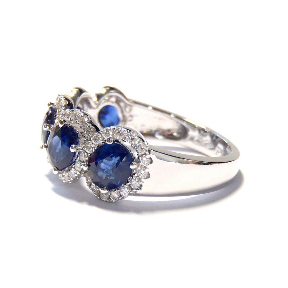 Fast Delivery Classic Popular Design Valentine 18k Solid White Gold Real Diamond Oval Blue Sapphire Jewel Band Ring for Women
