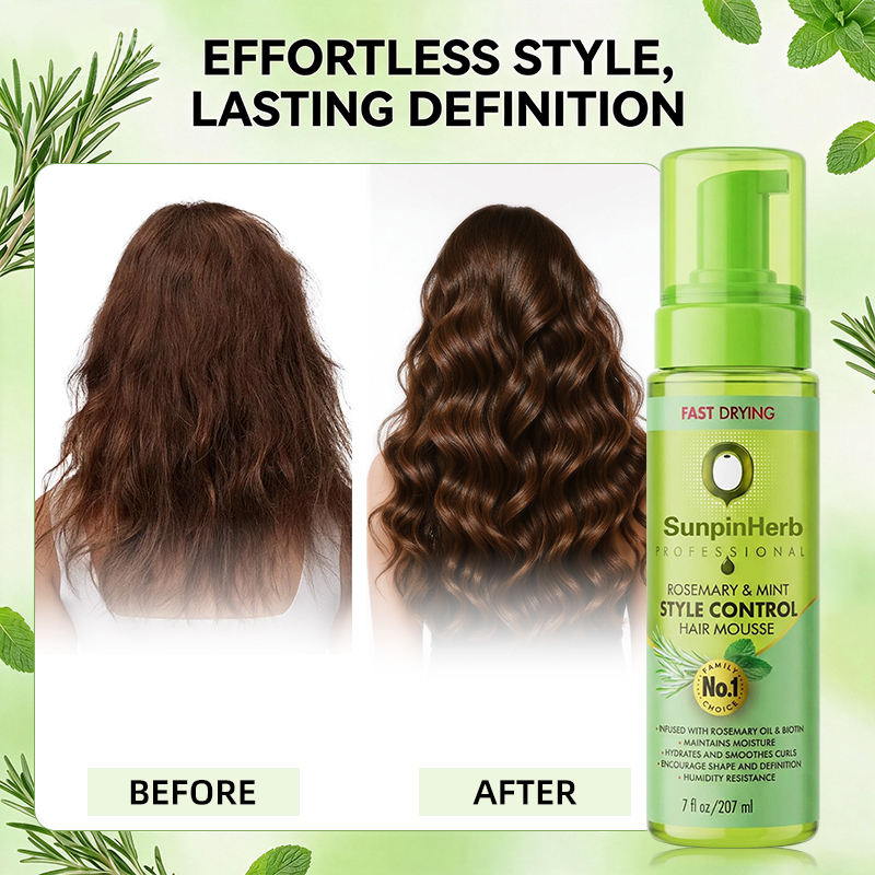Fast Drying Hair Mousse Rosemary Mint Style Control for Curl Definition Manageability and Frizz Reduction