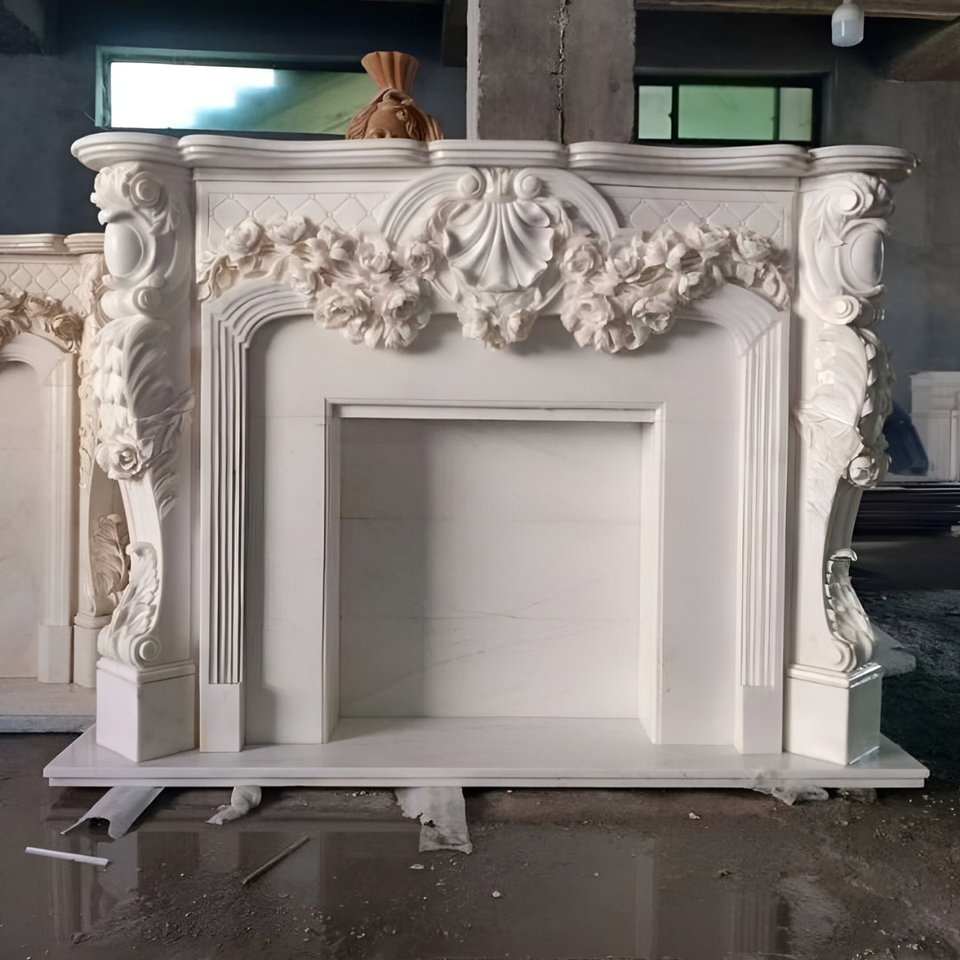 Fast Moving Natural Marble Fireplace Mantel Top Rated Customer Favorite Luxury Finish Authentic Hand Carved Custom Size