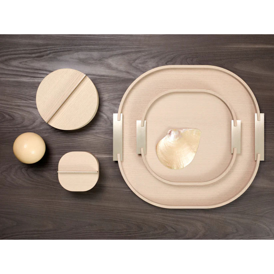 Fast Selling Wooden Serving Tray With Metal Gold Color Handle for Home & Kitchen Snacks & Fruits Serving Decorative Tray Supply