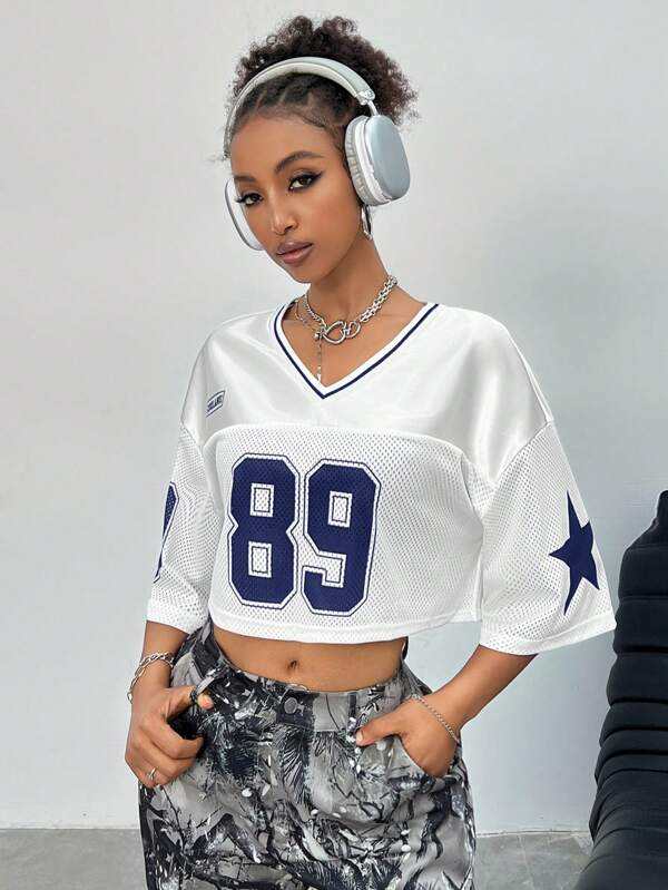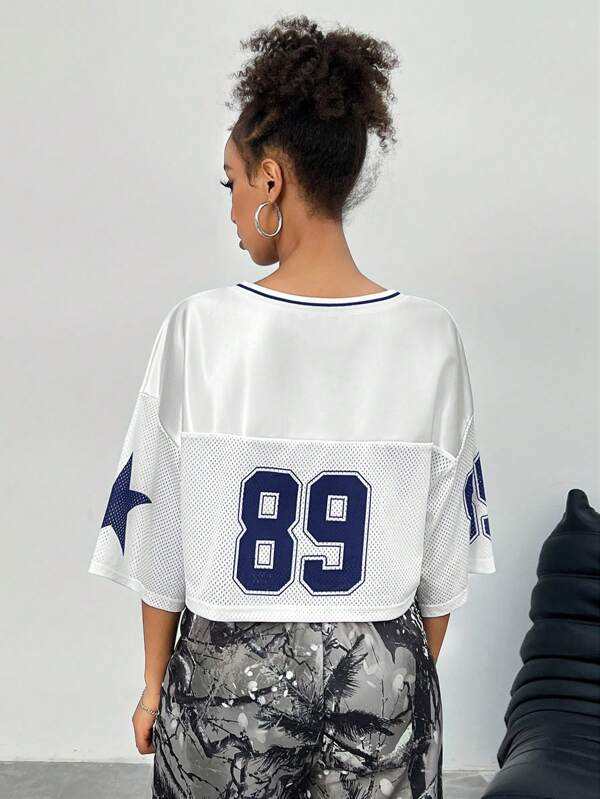 Fast Shipping White Mesh Crop Football Jersey 89 Number Women Streetwear OEM Private Label Wholesale Manufacturer