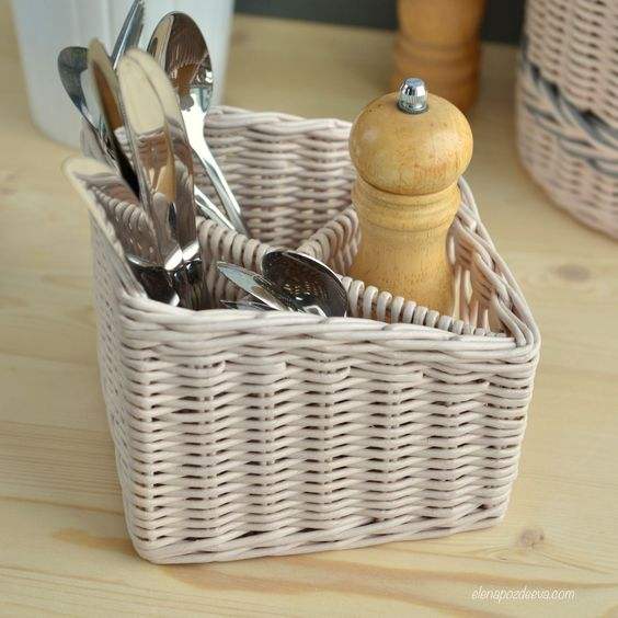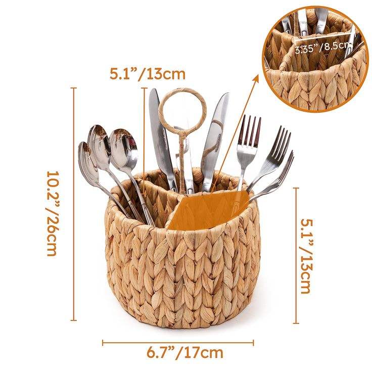 Fast Shipping for Rattan Countertop Cutlery Holder with Handle, Wicker Flatware Organizer, Hand Woven Water Hyacinth Holders