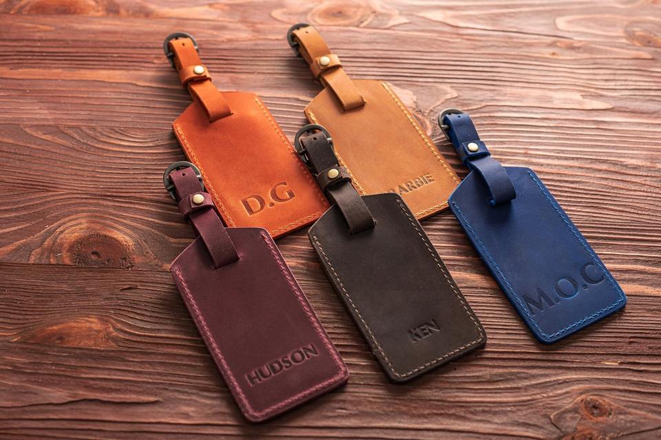 Fathers Day Gifts Genuine Leather Luggage Tags Personalized Wedding Favor Men's Him LLT-0018