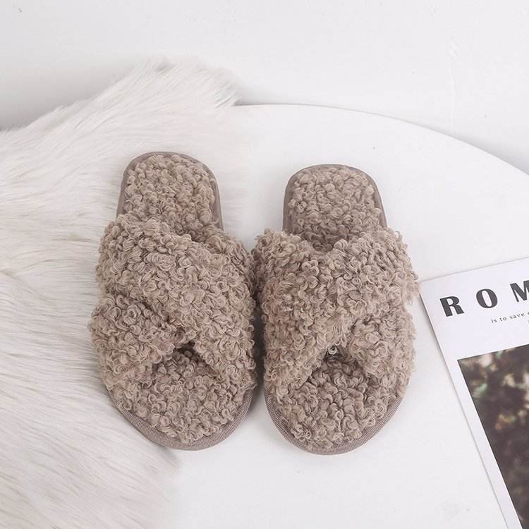 Faux Fur Warm Shoes Slip on Flats Female Slides Cozy Home Furry Slippers Winter Women House Slippers