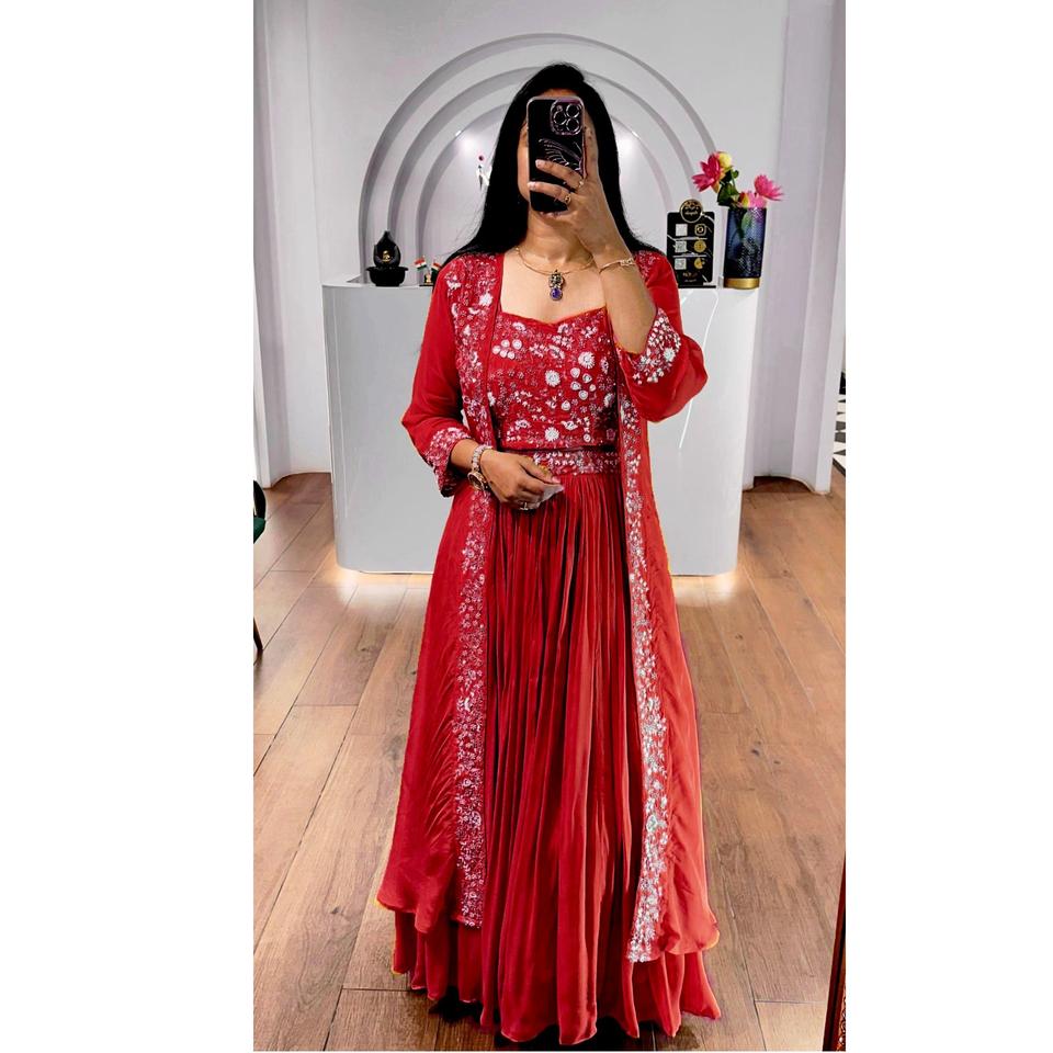 Faux Georgette Indowestern Lehenga Set Fully Stitched Shrug Lehenga Set for Wedding and Party Wear for Worldwide Export Sale