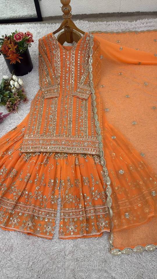 Product Name:Faux Georgette Top Palazzo And Dupatta