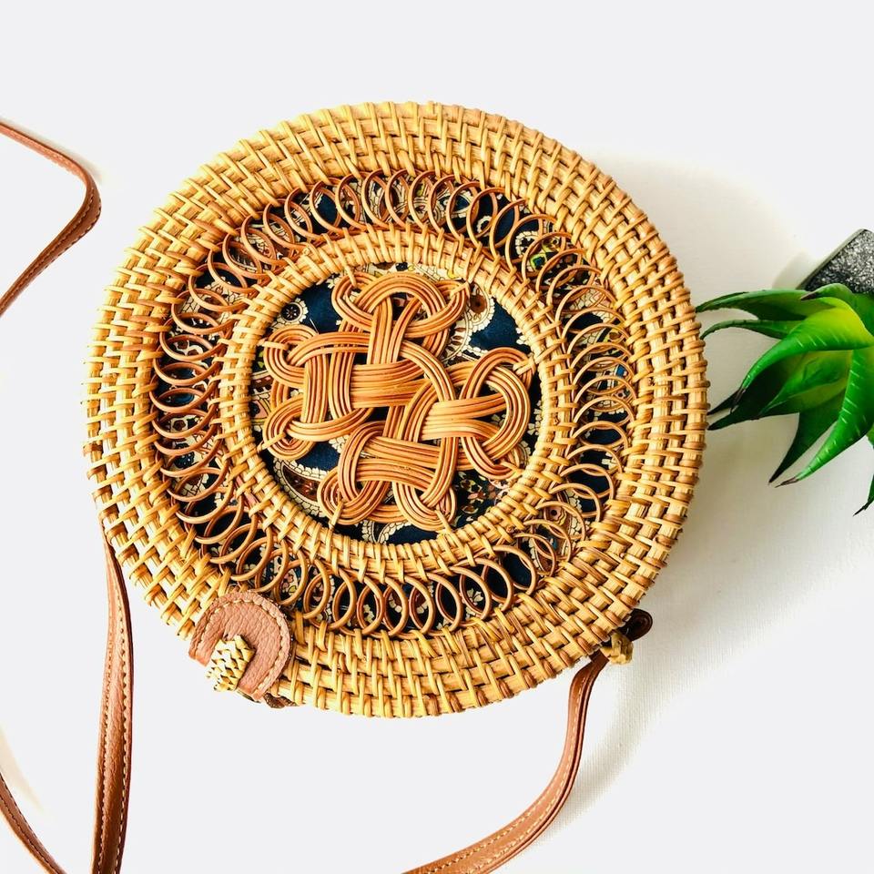 Faux Leather Straps Bohemian Round Natural Straw Rattan Crossbody Shoulder Bags for Women Low Price