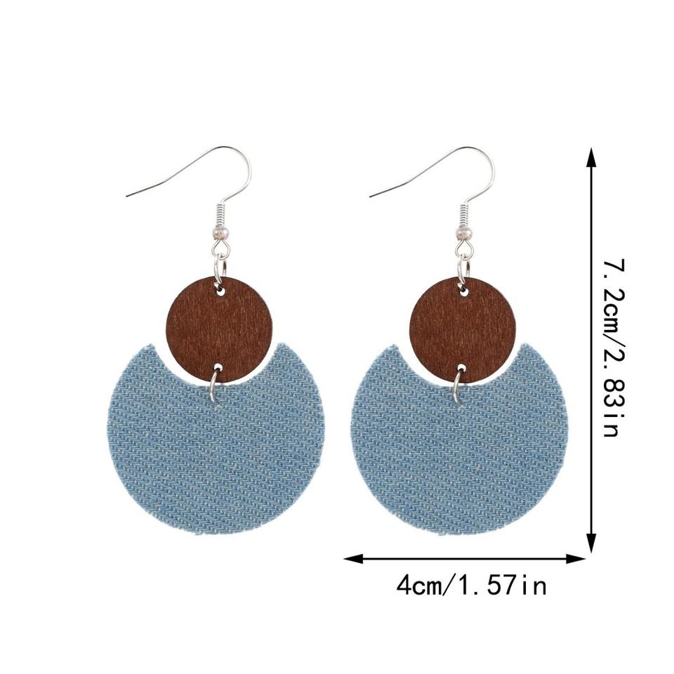 Faux Leather Trendy Geometric Droplet Crescent Wood Leather Patchwork Hypoallergenic Pendant Earrings for Women UIONEN 875
