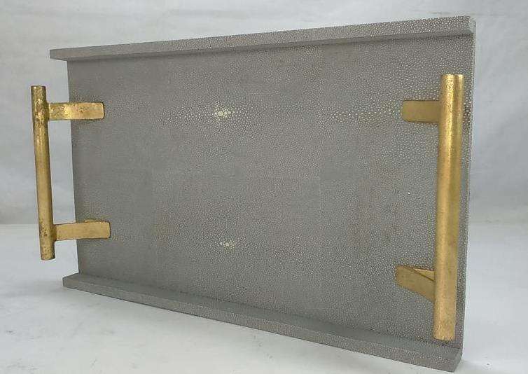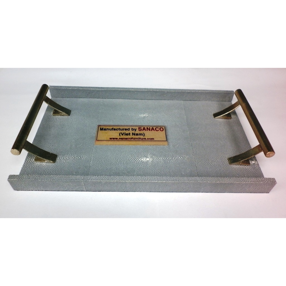 Faux Shagreen Tea Serving Tray DAPHOCO Model 052 Handmade Retro Design Made in Ho Chi Minh City Vietnam Light Grey Finish Decor