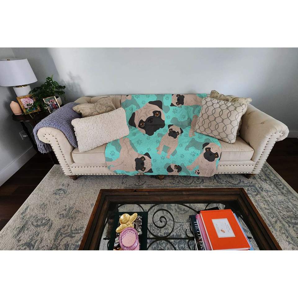 Fawn Pug Artwork Pattern Quilted Throw Blanket 50x60 Soft and Lightweight for Bed Couch or Sofa-Perfect Pet Blanket & Throw
