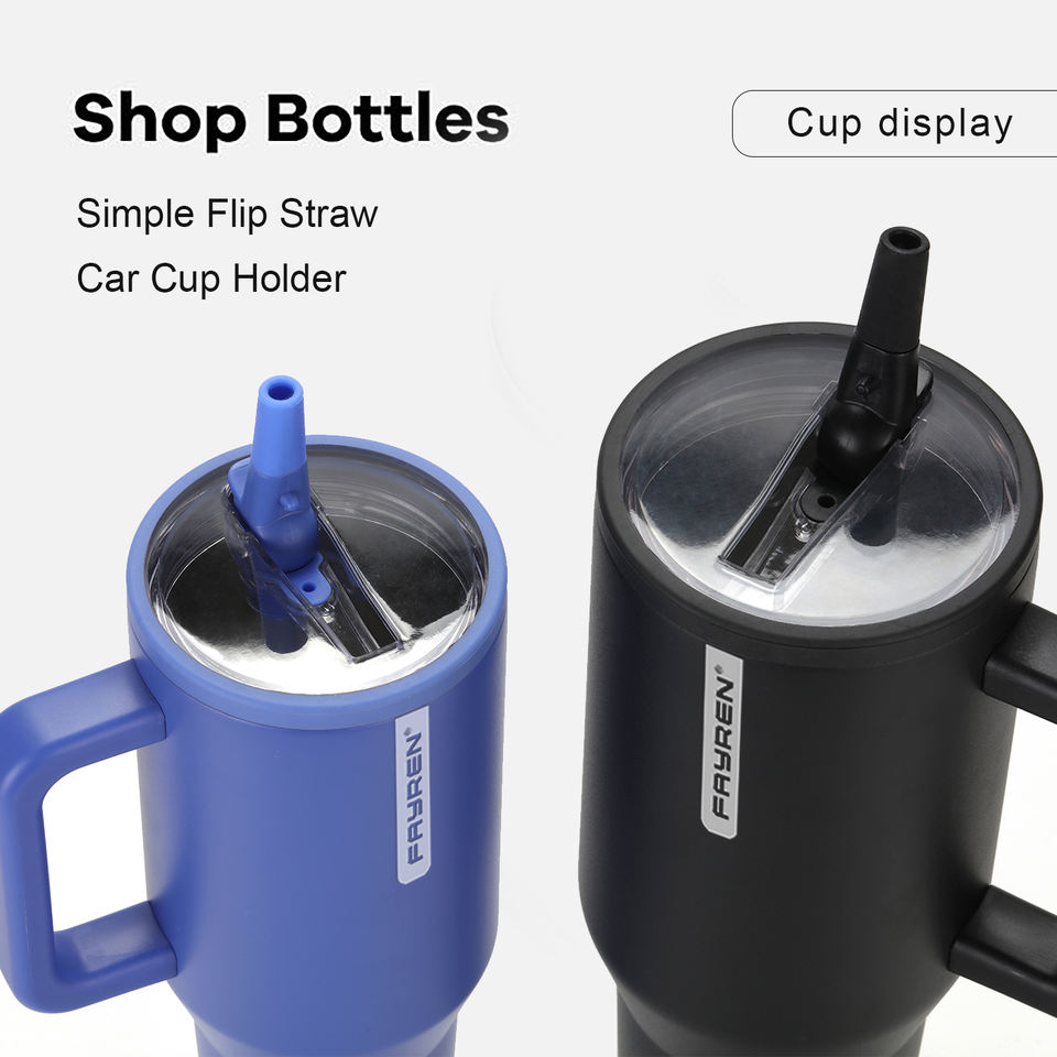 Fayren Tumbler with Straw Lid Leakproof Travel Mug Thermal Mug Vacuum Insulated Coffee Mug with Handle