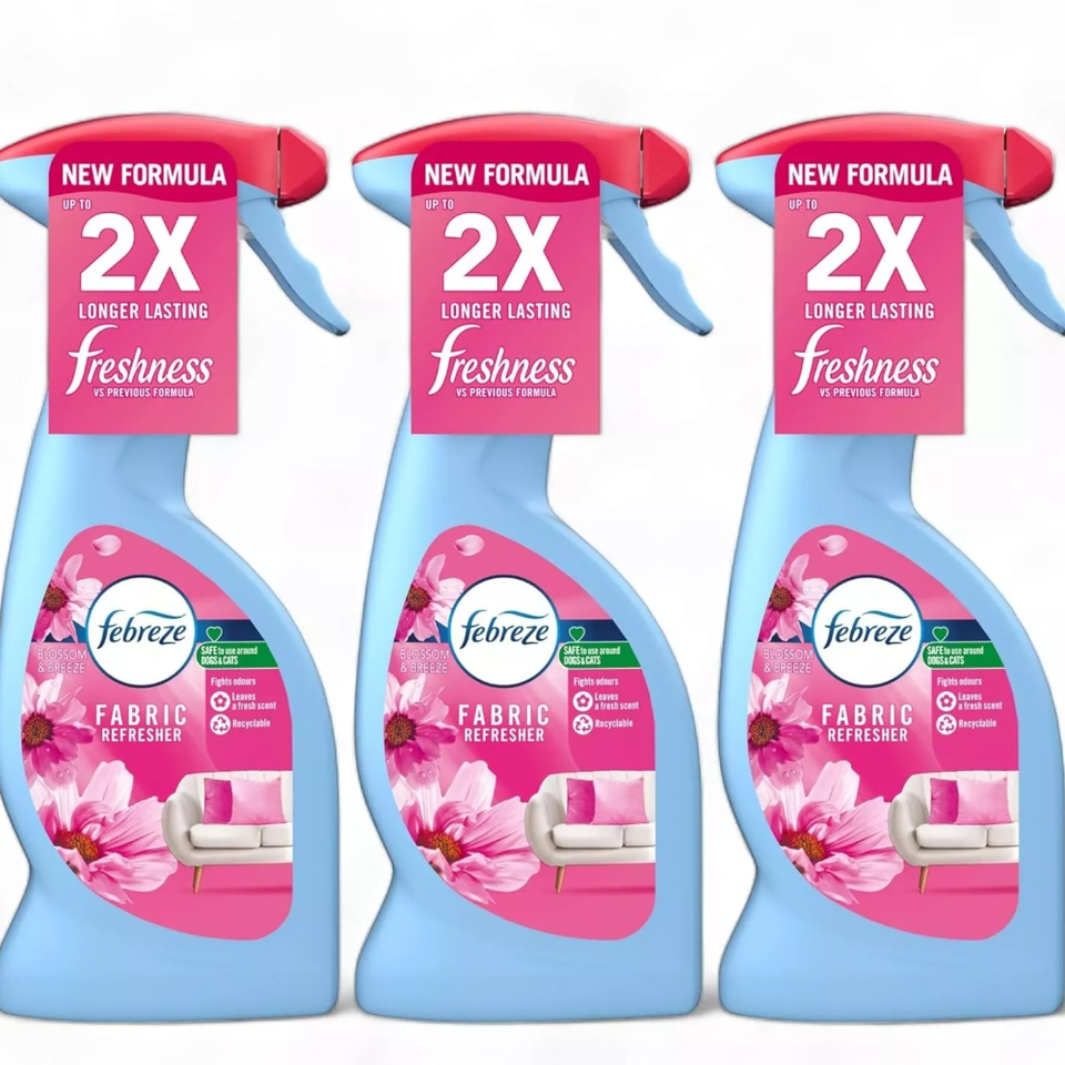 Febreze 375ml x 3 Fabric Refresher Sprays Blossom & Breeze Fragrance Cleaner and Odor Eliminator