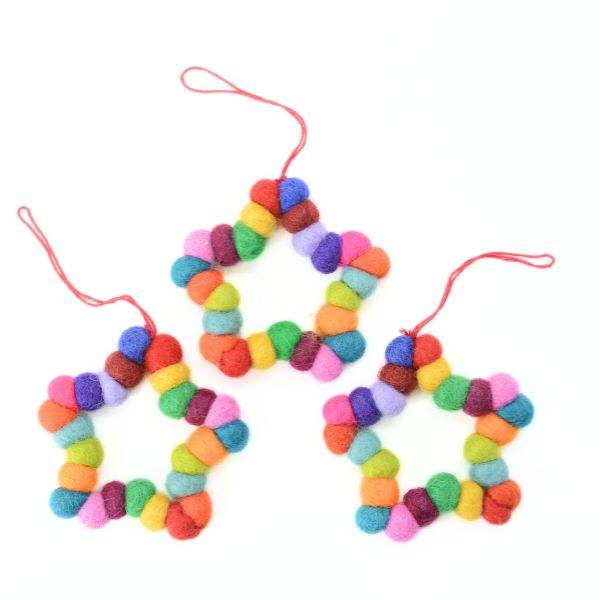 Felt Ball Star Christmas Decoration - X-mas Tree Hanging Ornament - Handmade Decorative Ornaments From Nepal