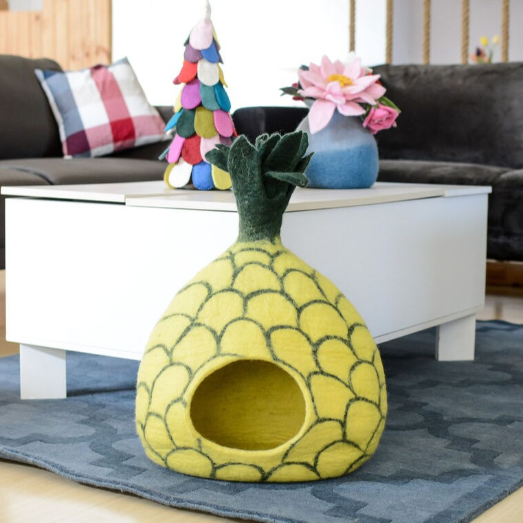 Handmade Modern Cat Bed Cave Pineapple Designed Kitten House Warm Comfortable Woolen Space for Cats Trained Artisan in Nepal