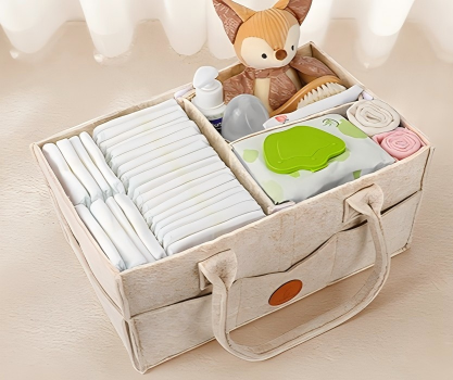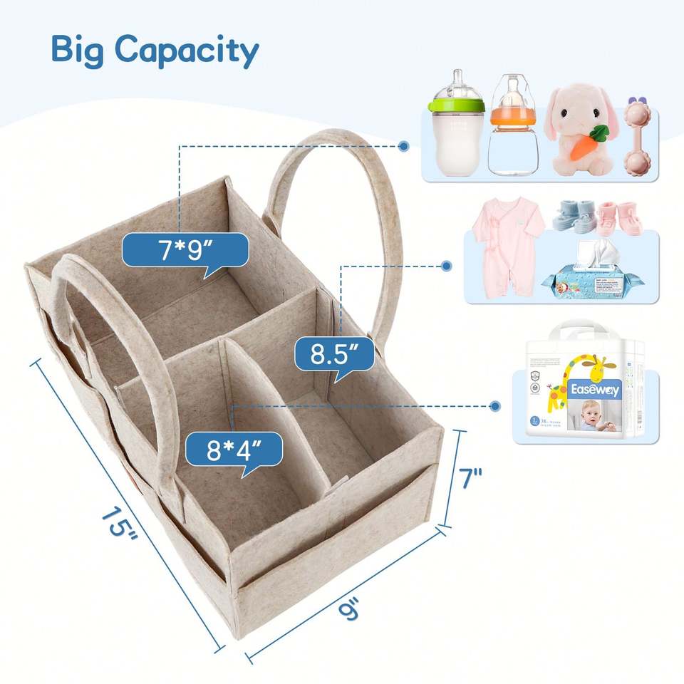 Felt Diaper Caddy Organizer for Changing Table Nursery Storage Bin Basket with Handle Suitable for Indoor Outdoor