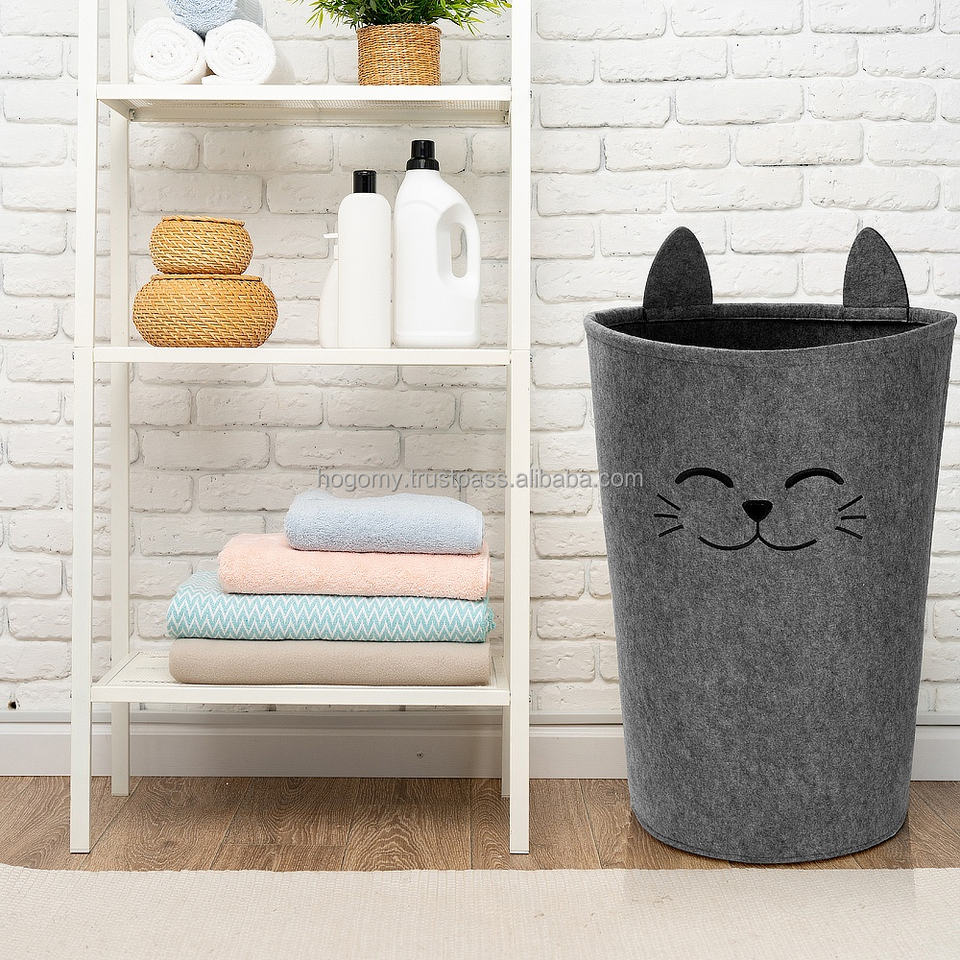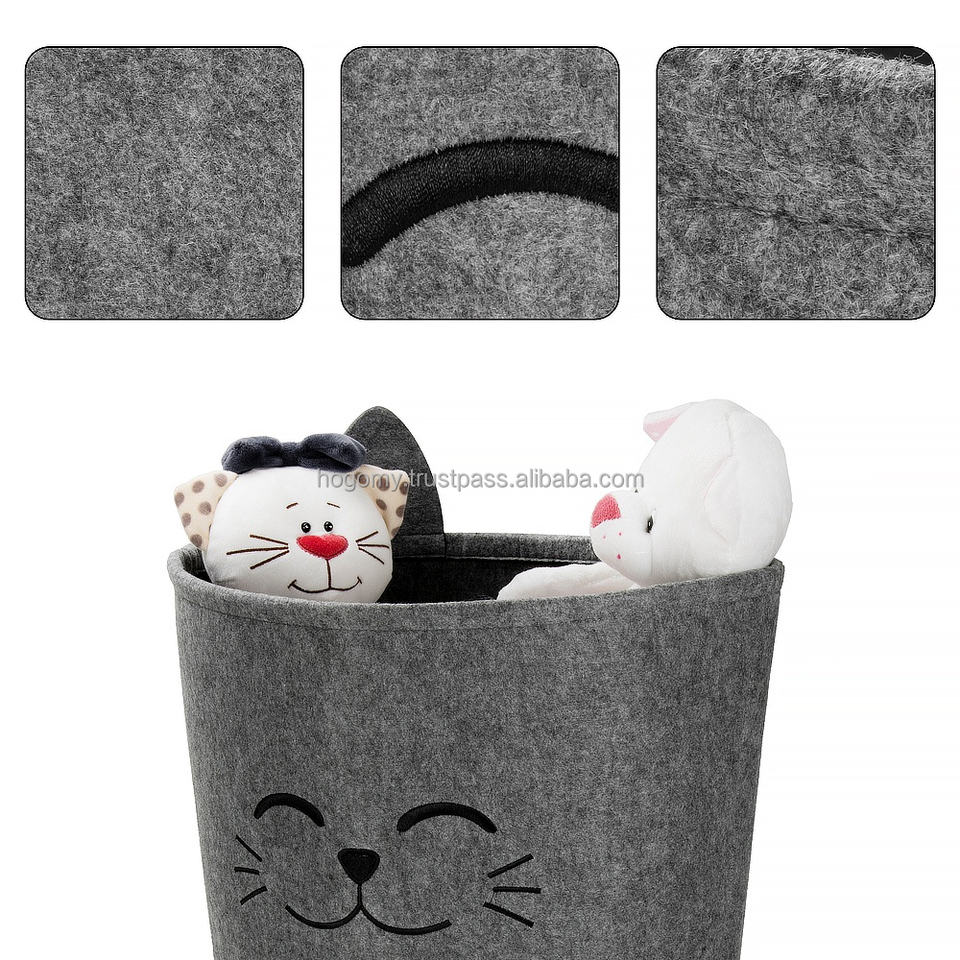 Felt Laundry Hamper Stackable Storage Kitten Custom Felt Storage Basket for Kids Bedroom