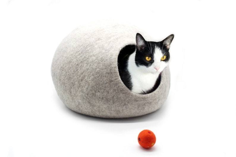 Handmade Modern Style Cat Cave Solid Pattern Wool-Felt Pet Den Durable and Soft Shell Comfortable Wool Felted Pet Bed
