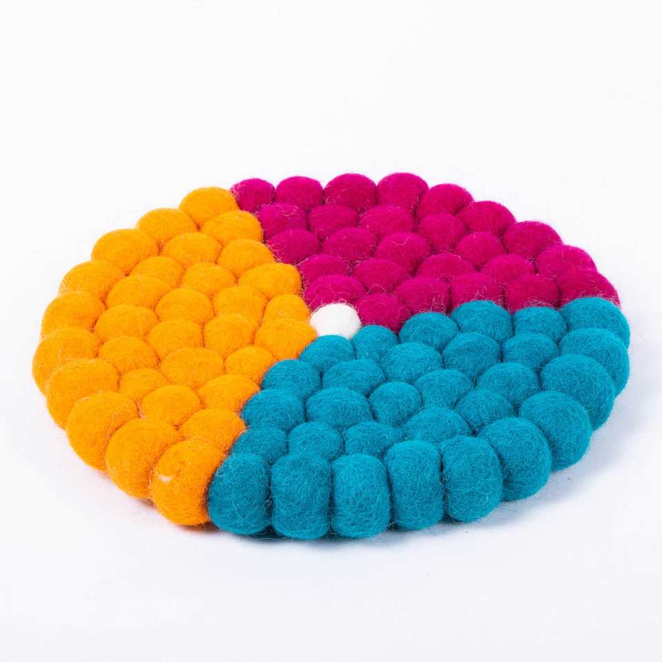Feltandwool 100% Woolen 4-Piece Multi-Color 1 cm Felt Ball Trivet Elegant Mats & Pads Accessory