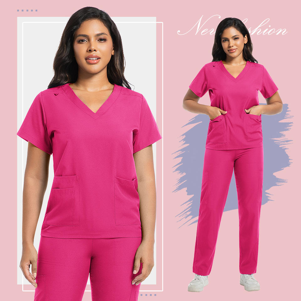 Female Scrub Suit Set Solid Color Moisture Wicking Hospital Uniform Women's Workwear Split Design