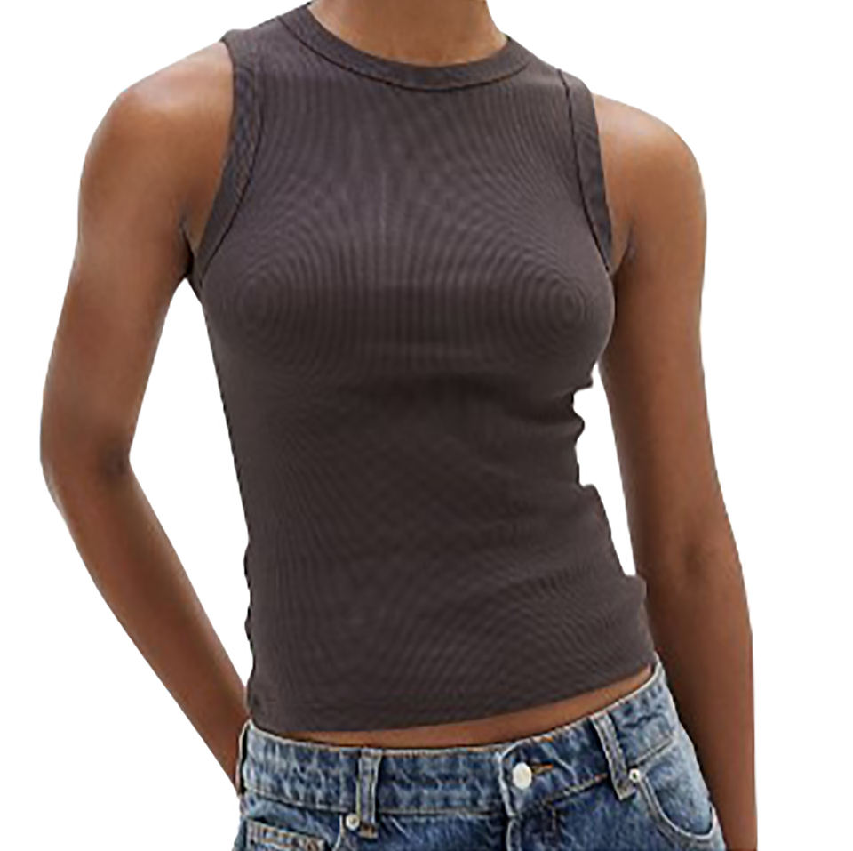 Classic Ladies' Tank Top with Elastic Top Breathable Knitted Crop Top Bow Collar Custom Logo Embroidered Lace Tie Dye Pattern